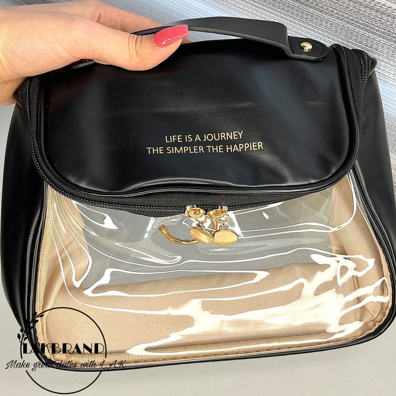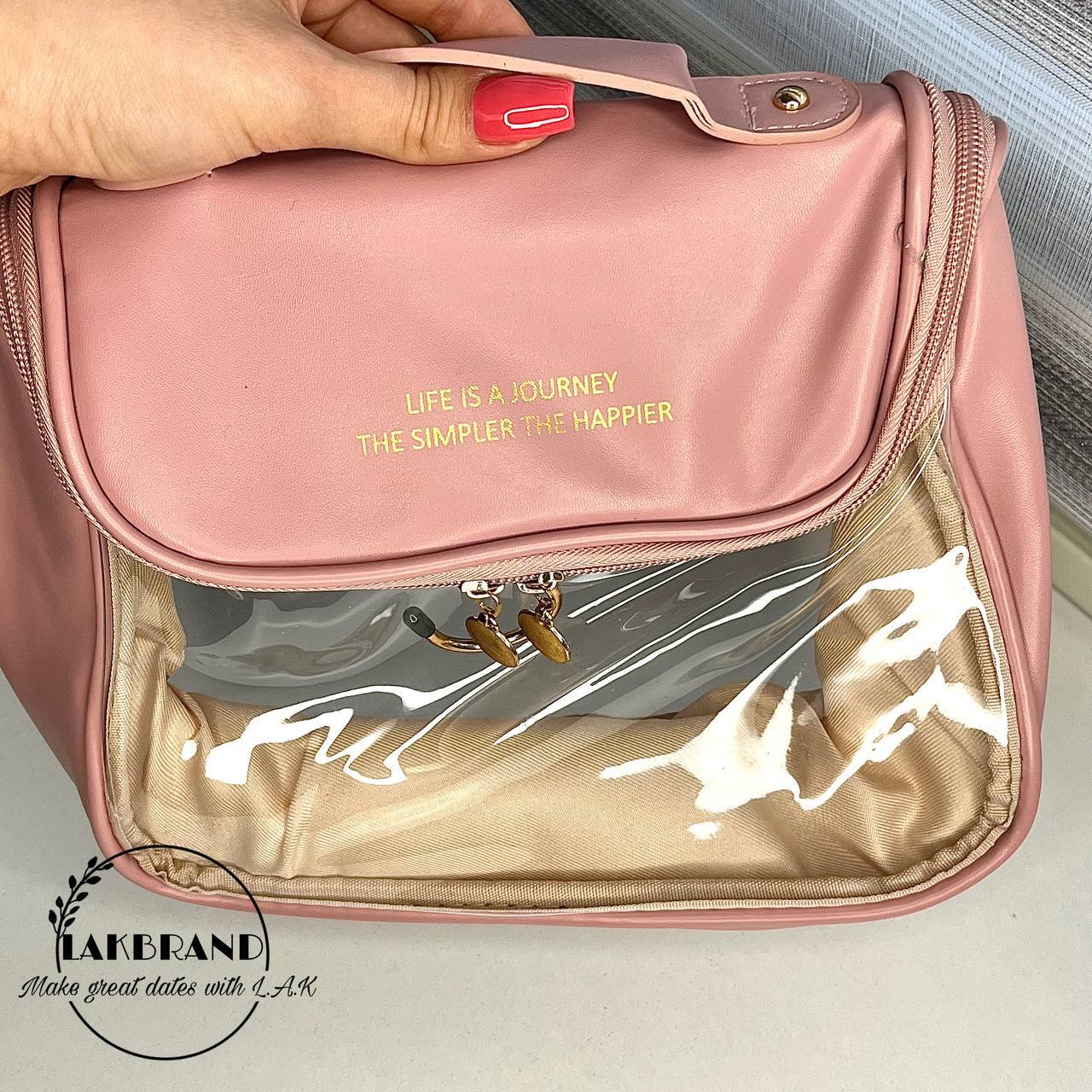 واشبگ ها مدل چمدانی بسیار جا دار هستند و با خیال راحت می توانید لوازم آرایشی و روتین پوستی خود را در آن قرار دهید. یک دسته محکم هم روی آن قرار دارد که به حمل و نقل آسان آن کمک می کند. داخل کیف نیز یک گیره آویز قرار دارد که می توانید کیف را بعد شستشو آویزان کنید.